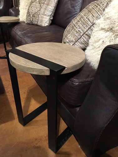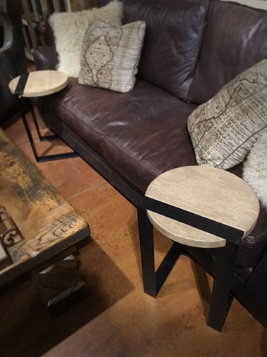 Well made and heavy, these wood and iron sofa side-table will make your time in your living room or media room stylish and practical. Great for drinks, books, remotes, and so much more. These handy little tables make a huge statement while being able to be tucked neatly away next to your sofa.